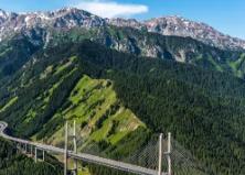 【温馨提示】果子沟大桥是双塔双索面钢桁梁斜拉桥,乘车沿路欣赏果子沟风光!果子沟大桥因交通管制,此点为乘车途观,不可下车游览。